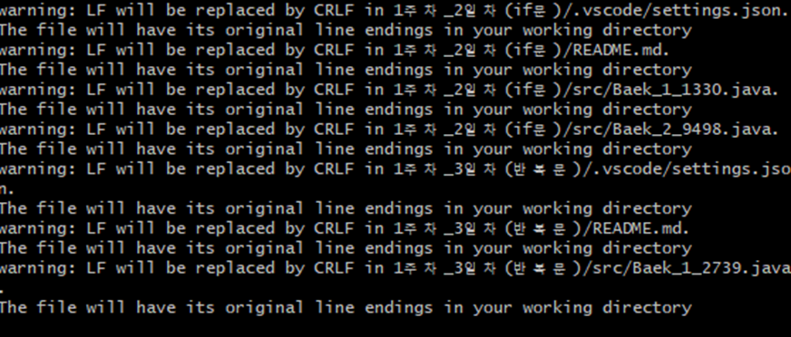 경고 : file에서 LF는CRLF로 대체됩니다.