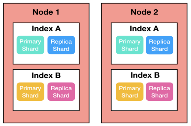 레플리카 샤드(Replica Shard) : 프라이머리 샤드의 복제본. 데이터 유실을 방지하고 가용성을 확보하기 위한 용도로 사용. 이 외에도 고가용성, 처리 속도 향상의 특징을 갖고 있음.